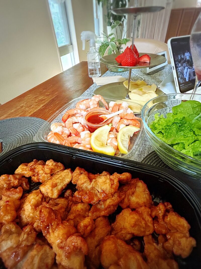 娘の好きなオレンジチキンとシュリンプカクテルも、とてもお酒にあうお味です。