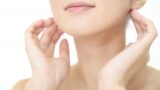 ①耳たぶのすぐ下に指をそえて、そこから首筋に向かって、ゆっくり下へさする。