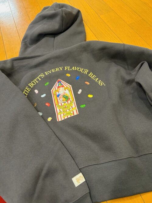 ハリー・ポッターの映画に登場する「蛙チョコレート」や、鼻くそ味で人気の「百味ビーンズ」があるお菓子屋さん「ハニーデュークス」のグレーのパーカーが可愛くて♡