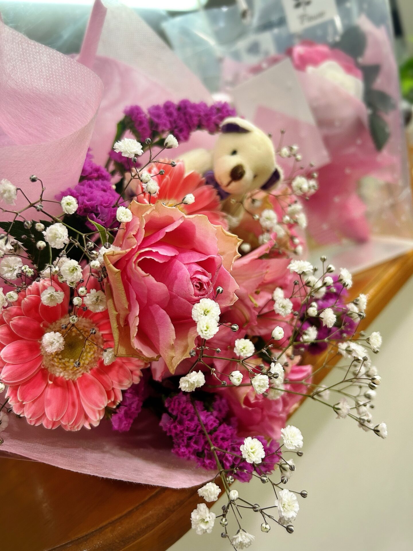 お兄ちゃんも、ちゃんと花束を持って、妹の晴れ姿を見守りに来てくれましたよ。